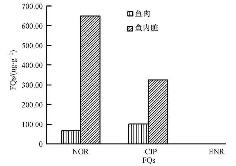 圖4 鳊魚魚肉和內臟中FQs的濃度