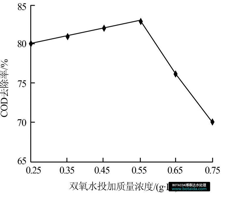 圖3 H2O2投加量對(duì)廢水COD去除率的影響