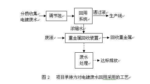 經(jīng)過(guò)多年電鍍廢水及涉重金屬的研究及工程實(shí)踐,摸索出一套成熟穩(wěn)定的電鍍廢水回用技術(shù)(連續(xù)錯(cuò)流抗污染多級(jí)膜法回用),把電鍍廢水分質(zhì)收集,單獨(dú)膜法回用,回用水可分別用到對(duì)應(yīng)的生產(chǎn)線或作為自來(lái)水使用;目前項(xiàng)目承接方采用的回用理念是“先回用后處理”,把廢水先進(jìn)行分質(zhì)收集,單獨(dú)膜法回用,回收率≥85%,濃縮后的廢水中重金屬離子濃度可提升到100倍以上,對(duì)該濃縮廢水可通過(guò)重金屬回收裝置(專(zhuān)利號(hào):CN201010578758.5)進(jìn)行重金屬的提取,大大提高了重金屬的回收效率,回收重金屬的同時(shí),也減輕后需廢水處理的負(fù)荷。