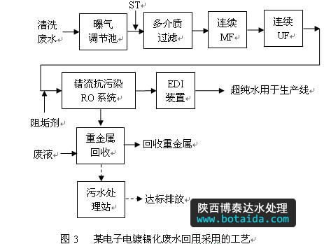 工藝說(shuō)明:清洗廢水主要包括酸性清洗廢水及堿性清洗廢水兩大部分,廢水中主要含有硫酸、硫代硫酸鈉、甲基磺酸、堿性液、銅、錫及添加劑等,混合后的清洗水主要偏酸性,多路清洗廢水匯集于調(diào)節(jié)池,通過(guò)曝氣攪拌,使水質(zhì)水量達(dá)到調(diào)節(jié)作用,調(diào)節(jié)后的水進(jìn)入多介質(zhì)過(guò)濾系統(tǒng)主要是攔截較大顆粒物及膠體,然后進(jìn)入MF/UF(可選項(xiàng)),主要去除較小懸浮物、膠體、細(xì)菌微生物等,MF/UF具有自動(dòng)運(yùn)行、沖洗功能;MF/UF透過(guò)液進(jìn)入膜脫鹽系統(tǒng),主要是脫除水中鹽份,該膜元件是根據(jù)電鍍廢水的特性,采用連續(xù)錯(cuò)流抗污染技術(shù),少量的濃縮水中含有較高的重金屬,先進(jìn)行重金屬回收(若較貴重的重金屬可分開(kāi)收集單獨(dú)回收重金屬,達(dá)到純度更高的重金屬),再把回收后的廢水供至污水站進(jìn)行物化或生化處理達(dá),最終確保出水水質(zhì)達(dá)到《電鍍污染物排放標(biāo)準(zhǔn)》(GB21900-2008)指標(biāo)。