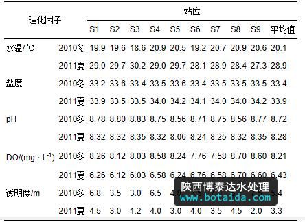 表1 2010年冬及2011年夏大亞灣海域水環(huán)境因子