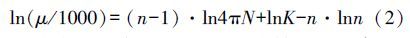 式中:μ為表觀黏度(mPa · s); N 為轉速(r · s-1); K為流體稠度系數(Pa · sn); n為流體流變指數(無因次).