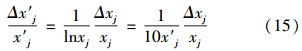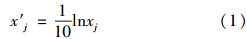 式中,x′j 為指標(biāo)j的規(guī)范值;xj為指標(biāo)j的變換值,對(duì)4類水體和空氣指標(biāo)j設(shè)定的變換式分別如式(2)~式(7)所示.