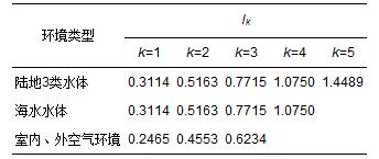 表 3 4類水體及室內(nèi)外空氣環(huán)境的引力普適指數(shù)的分級(jí)標(biāo)準(zhǔn)值Ik