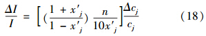 式中,分別表示引力指數(shù)的相對(duì)誤差和指標(biāo)測(cè)值的相對(duì)誤差.式(19)可寫為: