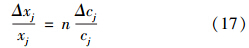 根據(jù)系統(tǒng)靈敏度定義,引力指數(shù)I對(duì)指標(biāo)測(cè)值cj的靈敏度Sc如式(19)所示.