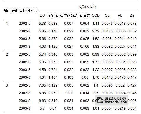 表 7 珠江口2002—2003年3個(gè)站點(diǎn)水質(zhì)指標(biāo)監(jiān)測(cè)數(shù)據(jù)cj