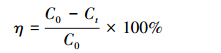 式中,η為MG的去除率;C0為反應(yīng)液中MG的初始濃度(40 mg · L-1);Ct為t min時反應(yīng)液中MG的濃度(mg · L-1),所有實驗平行3組進行.