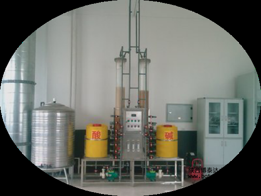 混床是指水依次通過裝有氫型陽離子交換樹脂的陽床和裝有氫氧型陰子交換樹脂的陰床的系統(tǒng)。氫型陽交換床用于除去水中的陽離子;氫氧型陰交換床用于除去水中的陰離子。通過復(fù)床可將水中的種礦物鹽基本除去。為了獲取較好的除鹽效果,陽床內(nèi)裝載強(qiáng)酸陽離子交換樹脂,陰床一般內(nèi)裝載強(qiáng)堿陰離子交換樹脂?;齑惨卜譃轶w內(nèi)同步再生式混床和體外再生式混床。