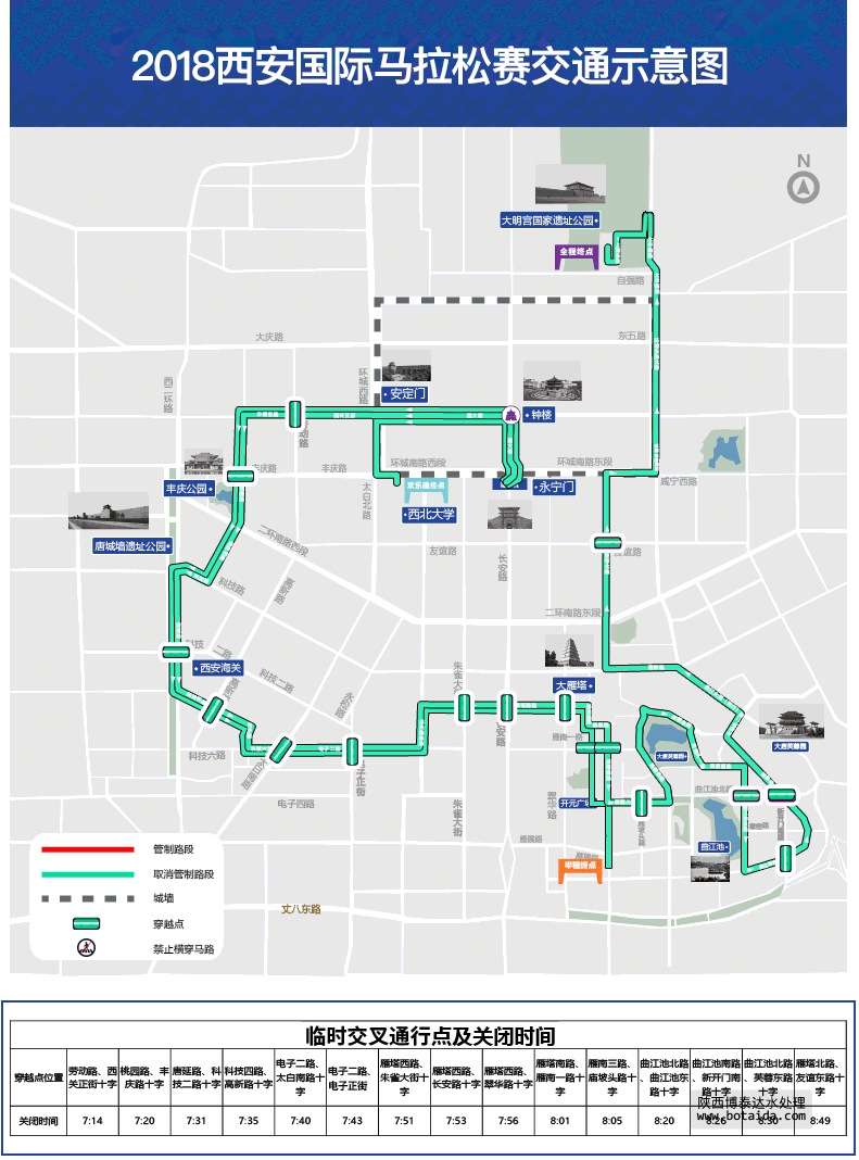 此次西安國際馬拉松的3項比賽起點均設(shè)在永寧門,為配合大賽舉辦,根據(jù)組委會要求,比賽當日地鐵二號線永寧門站將延遲至上午10點開站,自地鐵運營開始至10時,列車在永寧門站不停站通過,前往永寧門站的乘客可從相鄰的鐘樓站或南稍門站進出車站,由此給廣大乘客出行帶來的不便,請大家給予理解與支持。