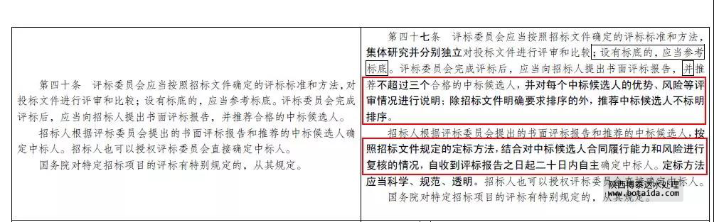 在意見稿中,對原招投標法第四十條的修改格外引人注目。修改之后,評標委員會推薦的中標候選人不標明排序;招標人按照招標文件規(guī)定的定標方法,結(jié)合中標候選人合同履行能力和風險進行復(fù)核的情況,自收到為評標報告之日起二十日內(nèi)自主確定中標人。