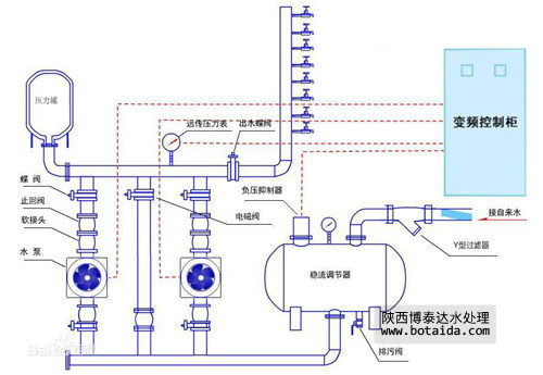 恒壓供水設(shè)備中液位變送器工作原理是當(dāng)被測(cè)介質(zhì)的兩種壓力通入高、低兩壓力室,作用在δ元件(即敏感元件)的兩側(cè)隔離膜片上,通過(guò)隔離片和元件內(nèi)的填充液傳送到測(cè)量膜片兩側(cè)。