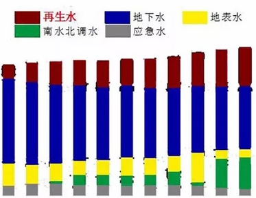 從研究的需求與定位來講,未來,再生水將成為城市的第二水源、工業(yè)的第一水源。其實(shí)這句話的前半句已經(jīng)在北京市實(shí)現(xiàn)了。根據(jù)北京市近十年的水源的利用情況可以看到:從2006年開始,對(duì)于再生水的使用量逐年增加,到了2016年水量已經(jīng)超過了南水北調(diào)的用水量。目前南水北調(diào)的中期供水量是11噸/年,而再生水的用量以后還會(huì)越來越大;從水十條目標(biāo)來看,到2020年,缺水城市再生水利用率達(dá)到20%以上,京津冀區(qū)域達(dá)到30%以上;從全國的平均水平來看,目前再生水的回用率不超過10%,因此從這個(gè)方面來看,不管是理論研究,還是實(shí)際應(yīng)用,再生水都有非常大的發(fā)展前景和市場(chǎng)。