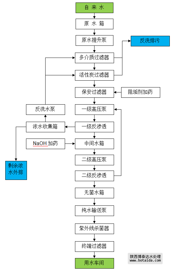 采用“MMF+ACF+雙級反滲透” 的主體工藝