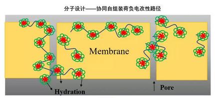 通過(guò)分子設(shè)計(jì),采用雙荷負(fù)電(兩親)嵌段共聚物自組裝形成的豐富而有序的拓?fù)浣Y(jié)構(gòu),對(duì)常規(guī)UF膜進(jìn)行協(xié)同自組裝荷負(fù)電改性,最終制得高度有序的不對(duì)稱均孔荷負(fù)電功能超濾膜。